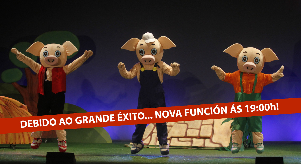 Una revisión de la tradicional fábula para adaptarla a los nuevos tiempos, incluyendo la gura de Xan y Xiana, dos exploradores muy aficionados a los cuentos, que se adentran en el bosque para conocer a sus personajes favoritos. En su viaje, además de descubrir la historia, los tres cerditos bailarán al ritmo de las cinco canciones -cantadas en directo- que componen el espectáculo, y que tienen una clara misión didáctica para que los más pequeños aprendan o refuercen conocimientos como los números, los colores o las prendas de vestir.