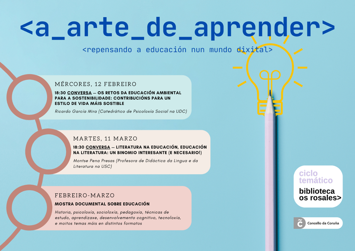 Nace un novo ciclo temático na Biblioteca Os Rosales nos meses de febreiro e marzo de 2025, onde repensar a educación nun mundo dixital.