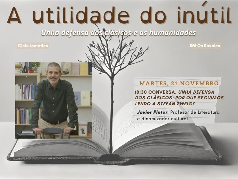 Tomando o seu traballo como punto de partida e inspiración, na Biblioteca Os Rosales propoñemos unha reflexión sobre o sentido do pensamento humanístico e o valor dos clásicos coa conversa 'Unha defensa dos clásicos: Por que seguimos lendo a Stefan Zweig?' a cargo de Javier Pintor, que se enmarca dentro do ciclo temático A utilidade do inútil. Unha defensa dos clásicos e as humanidades.