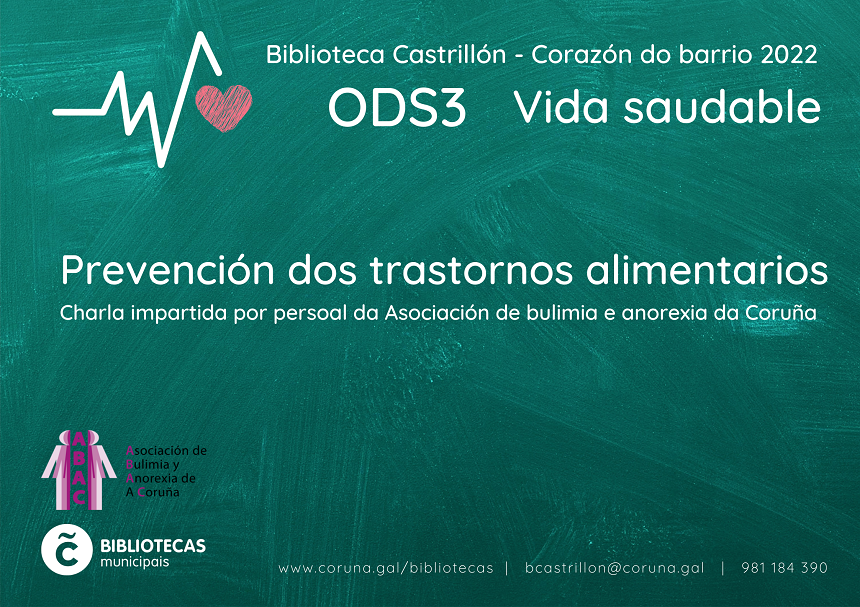 Nesta charla coñeceremos as primeiras sinais de alarma. Estará impartido por psicólogos de ABAC (Asociación de bulimia e anorexia da Coruña) e dirixido a nais, pais, orientadores e titores.