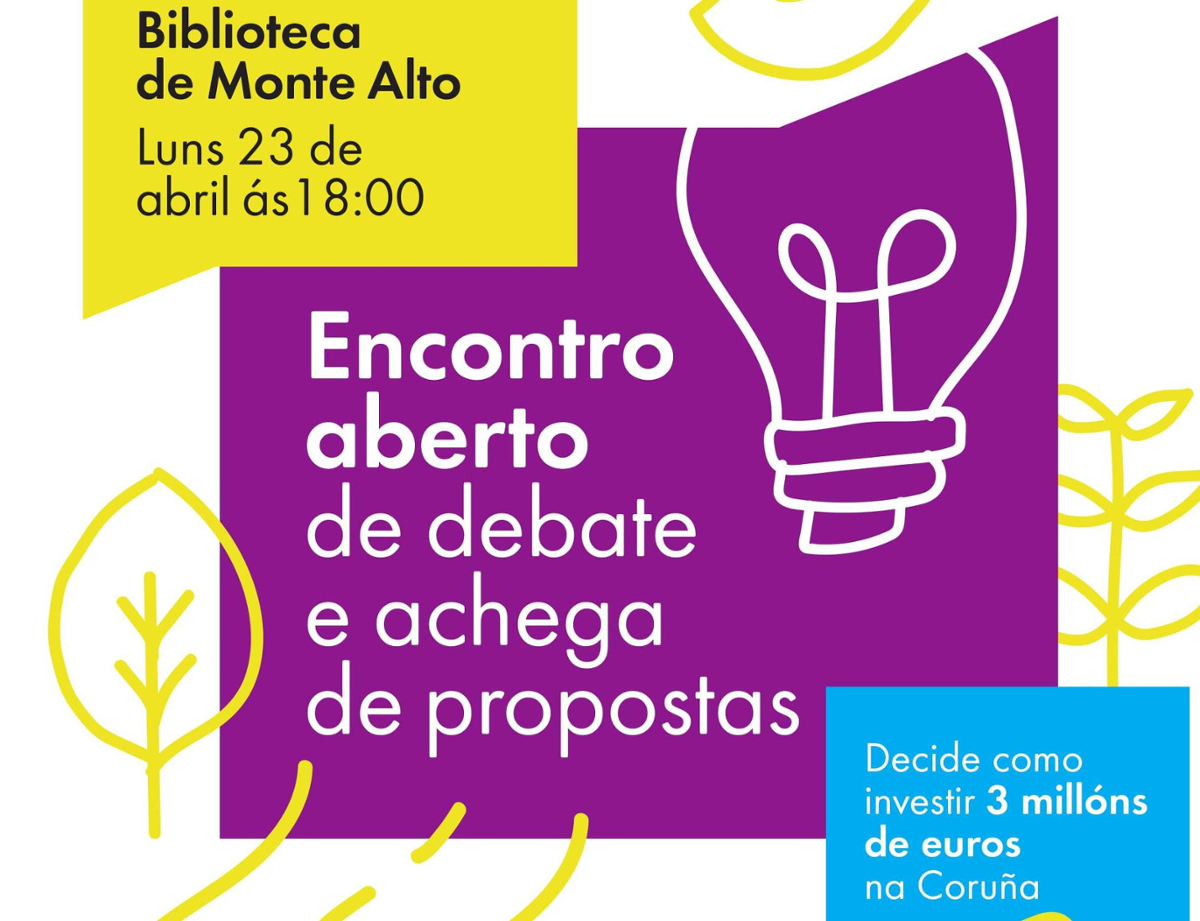 Na primeira fase, de presentación de propostas (do 18 de abril ao 14 de maio), realizarase na biblioteca de Monte Alto un encontro de debate e achegas de propostas aberto a toda a cidadanía, para falar das necesidades dos distritos e da cidade.