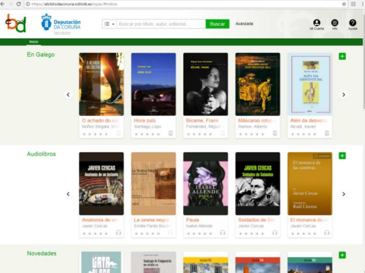 Unha plataforma de préstamo dixital de libros, películas, audiolibros, e outros contidos dixitais das máis variadas temáticas, que a Deputación da Coruña pon en servizo para todas as persoas usuarias das bibliotecas municipais da provincia da Coruña.