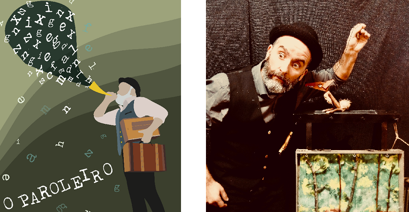 O paroleiro é moi amigo de parolar. Gústalle laretar, enredar e contar. Conta sucedidos, historias e sobre todo moitos contos que leva na súa maleta, nos seus petos e nos seus zapatos.