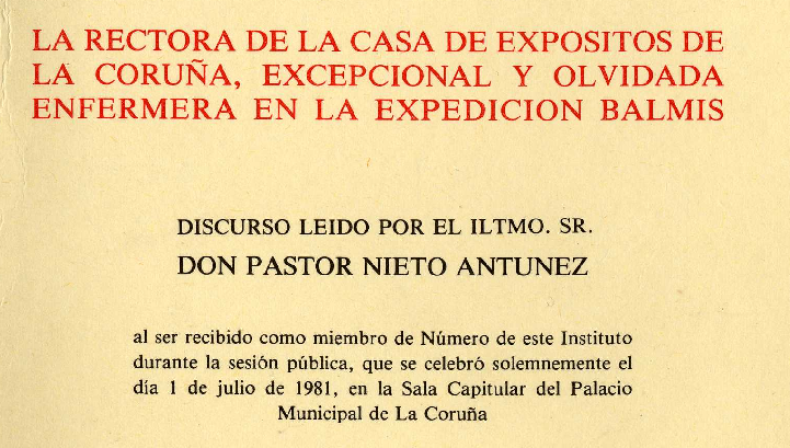 Na mostra poderás atopar materiais tan interesantes coma este discurso que pon en valor a inxustamente esquecida figura da enfermeira galega, Isabel Zendal, facendo fincapé en que o éxito da Expedición Balmis non se podería explicar sen ela, a Reitora da Casa de Expósitos da Coruña, que coidou dos nenos con amor maternal, mitigando a dureza da viaxe.