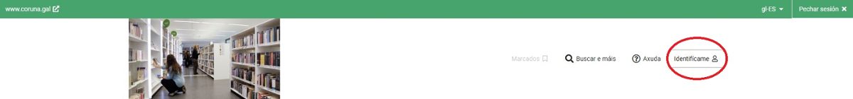 Para iso tes que premer sobre a casa "Identifícame" e cubrir o teu número de carné e contrasinal, e abrir a continuación o apartado "A miña biblioteca" do menú que aparece ao premer sobre o teu nome.