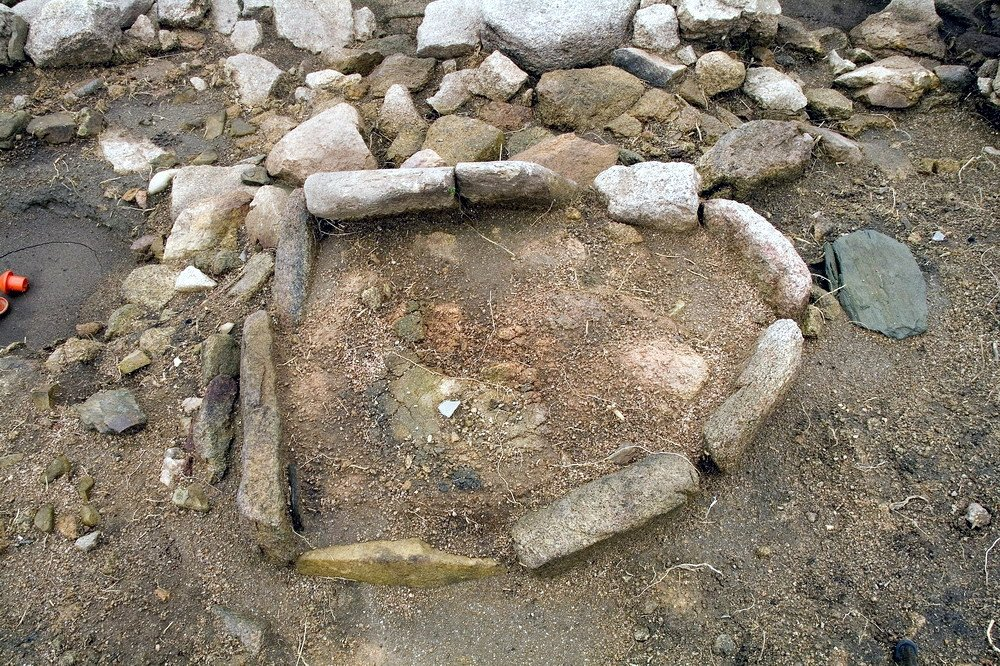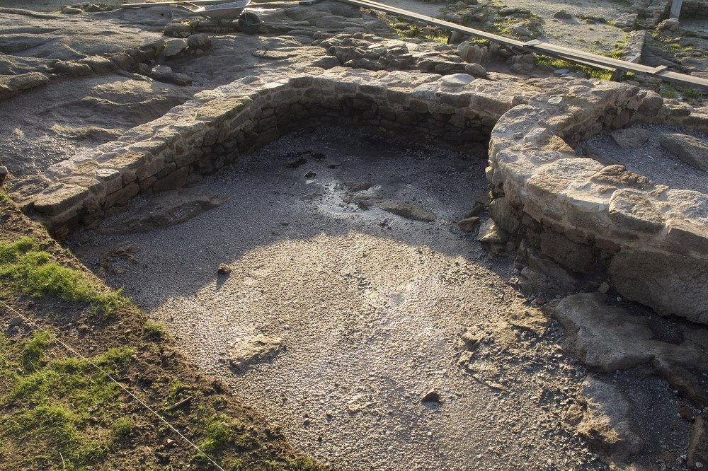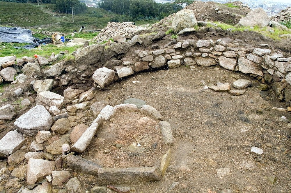 Relacionada coa primeira fase de ocupación, aquela que se vincula coa antiga muralla, é posible documentar varias vivendas circulares, xa construídas en pedra. Manteñen un esquema semellante ás anteriores, pero con muros pétreos e de maiores dimensións. Estaban cubertas con tellados cónicos de palla, a solución máis rendible para facerlles fronte ás habituais choivas da zona. A porta é o único van de iluminación, é dicir, as vivendas non tiñan xanelas. No centro dispoñíase un poste que sostiña a cuberta, e ao pé deste poste normalmente estaba o fogar.