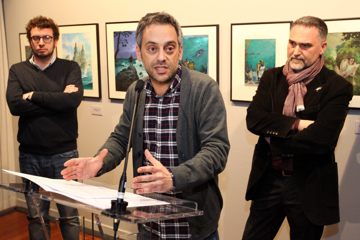 El alcalde de A Coruña, Xulio Ferreiro, y el concejal de Culturas, Deporte e Coñecemento, José Manuel Sande, participaron esta tarde (20.00 horas) en la Sala Municipal de Exposiciones Kiosco Alfonso, en la inauguración de la exposición Miguelanxo Prado. 2003-2016, una selección de los trabajos realizados en los últimos 14 años por el reconocido dibujante coruñés y director del Salón Internacional Viñetas desde o Atlántico, también presente en el acto. "Traer la obra de Miguelanxo Prado al Kiosco Alfonso es un poco como devolverla a casa", señaló el regidor, en alusión a la primera muestra sobre la obra del autor, un compendio de sus principales trabajos entre 1993 y 2003, o al Salón del Cómic, que tiene en el Kiosco Alfonso una de sus principales sedes. En su intervención, el regidor destacó la "huella coruñesa, gallega y atlántica que el autor deja siempre en su obra, ya sea a través de imágenes, de lugares, del idioma o mismo de evocaciones fantásticas". "Es a coro una obra universal y cercana", observó, para destacar el papel de Prado "como autor de amplia proyección, trayectoria y que es referente para las nuevas generaciones de creadores y creadoras". También, Ferreiro aludió a la "buena salud" de este sector creativo en la ciudad, "tanto por la nómina de autores y autoras como por su amplia actividad". En este sentido, reafirmó el compromiso del Gobierno local con la creación vinculada a la ilustración y a la banda diseñada, "como manifestación de la excelencia cultural que forma parte de la identidad de esta ciudad", y citó acciones como la edición, el pasado año, de Coruña Gráfica, la primera guía profesional de creadores y creadoras locales de banda diseñada, así como la exposición vinculada a esta publicación que promovió el Ayuntamiento, además del propio impulso a Viñetas desde o Atlántico.