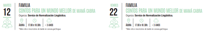 Desde Normalización realizamos esa actividade de contos con Mamá Cabra o 12 de novembro, e no dito folleto está duplicada, por equivocación, tamén para o 22.