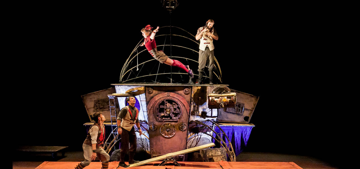 Teatro y circo caminan al unísono, cuerpo y mente saltan con tanto denuedo como elegancia, niños y mayores ríen por igual desde la sala y aplauden, a cual con más fuerza.."