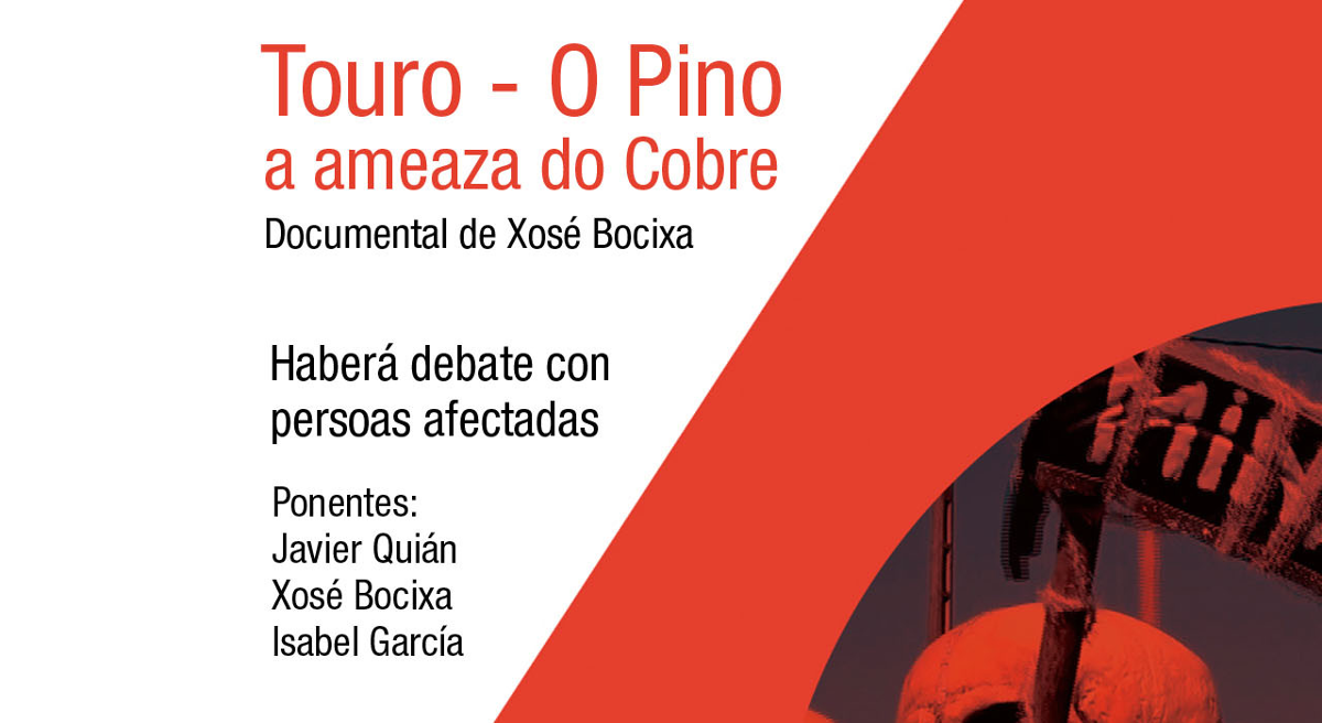 Longametraxe documental coa dirección e realización de Xosé Bocixa (autor de"As Encrobas A ceo aberto", "Rosa de Corcoesto"...) e coa produción de Tingalaranga Audiovisual en colaboración con Nós Tv presentan un documental que aborda en 55 minutos (a través da voz de científicos, veciñas e veciños, alcaldes, empresari@s, o conflito xurdido en Touro e O Pino desde que a empresa galega Cobre S Rafael coa chipriota Atalaia Mining que ten case o monopolio do negocio do cobre no Estado, pretenden reabrir as vellas minas de cobre dado o seu alto prezo no mercado debido á demanda asiática.