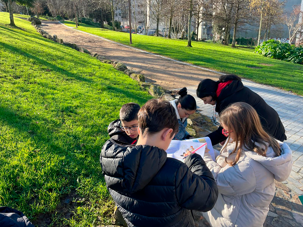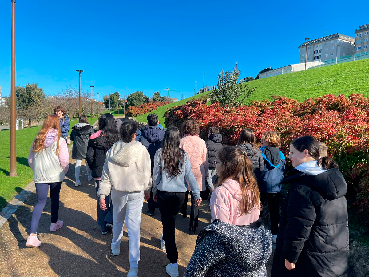 Alumnos do CEIP María Pita percorrendo o parque de Oza