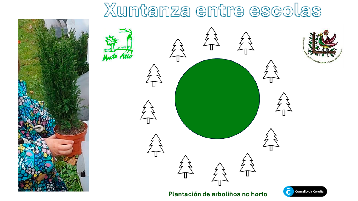 Aproveitando estas datas tan sinaladas, os/as alumnos e alumnas das Escolas Infantís Municipais de Monte Alto e Luís Seone participaron nunha plantación de árbores na zona exterior das escolas, acompañados de educadoras e grupos de maiores da EIM Luís Seoane.