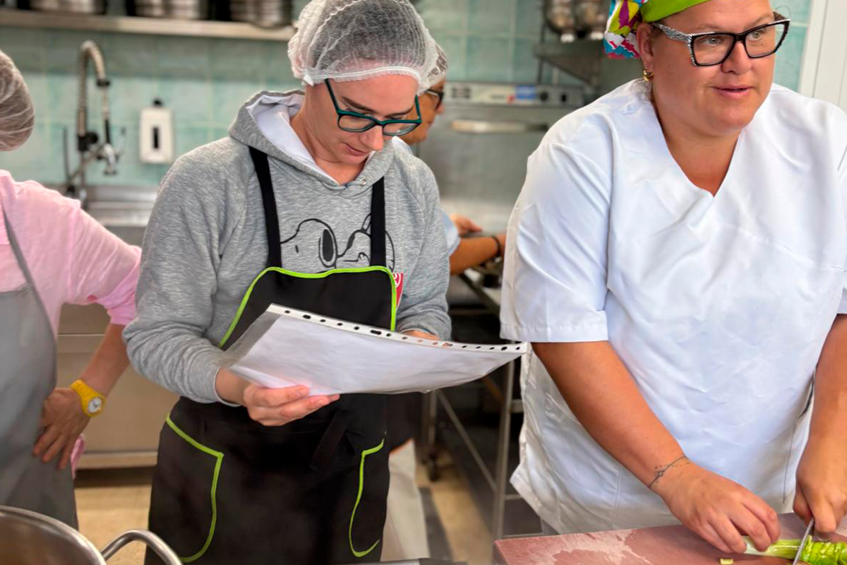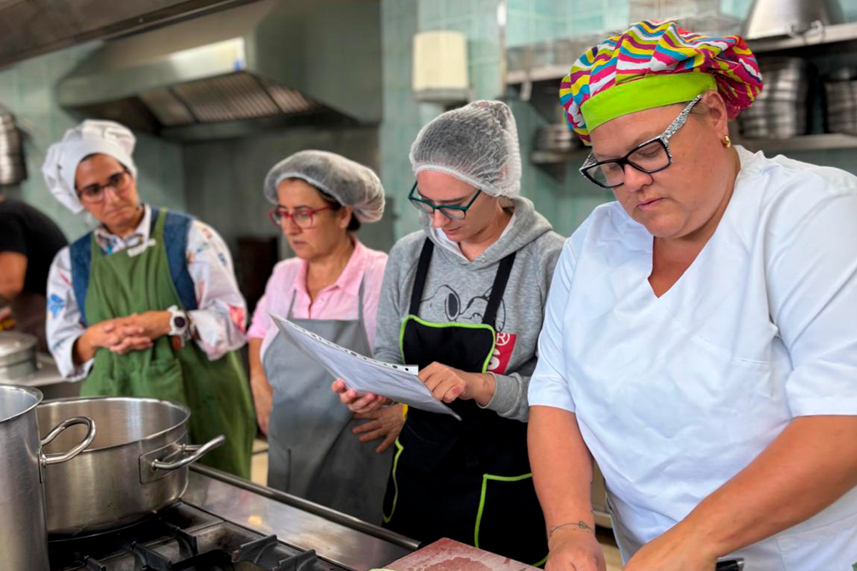 O evento, que contou coa participación de 20 persoas pertencentes ao colectivo de cociña de centros escolares da contorna, dividiuse nunha charla teórica inicial, que incluíu fichas técnicas con escandallos e custos, a elaboración dun menú tipo, composto por materias primas de produción ecolóxica e, finalmente, a degustación por parte do persoal do centro escolar do menú elaborado.
