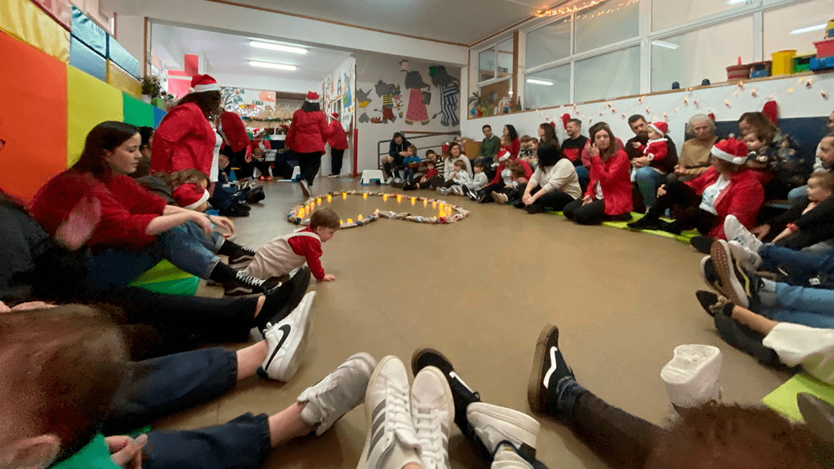 La Escuela Infantil Municipal Monte Alto celebró el pasado miércoles 18 su fiesta de Navidad de 2024, una celebración para las familias de la escuela en la que se cantaron villancicos, se contaron cuentos y en la que la luz tuvo un gran protagonismo en todo momento: desde el inicio, con un gran corazón de recibimiento formado por velas, hasta el final, con una merienda iluminada por las luces de los farolillos realizados por los niños y niñas de la escuela.