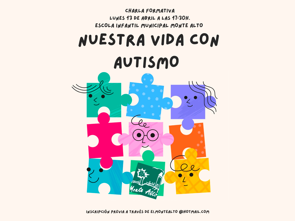 A Escola Infantil Municipal Monte Alto organiza, o vindeiro luns 13 de abril, a partir das 17:30 horas, unha charla formativa titulada "A nosa vida con autismo".