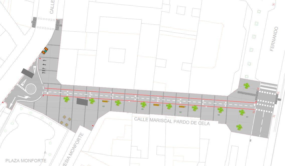 Las actuaciones a desarrollar se concretan en las obras de trazado del carril bici, definición de las zonas peatonales, mejora de los pavimentos y los servicios municipales, así como de las infraestructuras de recogida de pluviales y red de saneamiento de la Calle Mariscal Pardo de Cela, teniendo en cuenta en todo momento la accesibilidad, desde el punto de vista funcional, estético, social y económico.