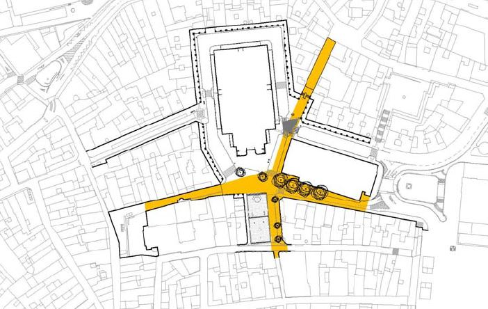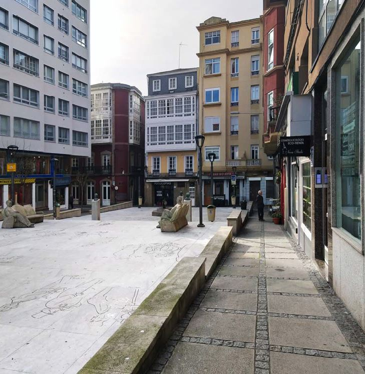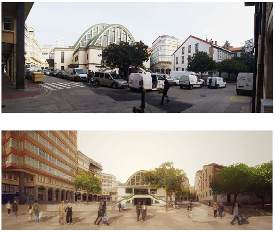 • Para a integración do Mercado e a praza do Humor, todo iso conectado coas rúas existentes (Marqués de Pontejos, Xoán XXIII, San Nicolás, San Agustín e Florida con Trompeta).