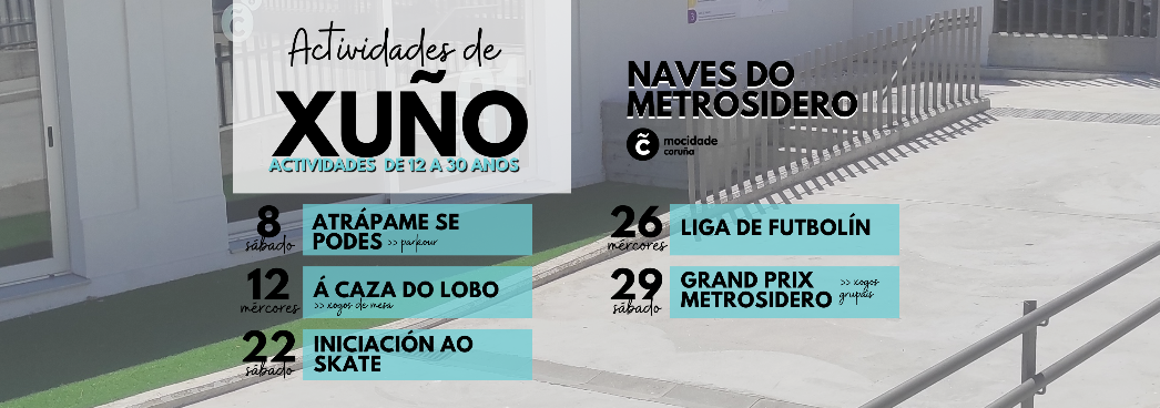 Presentamos as actividades de xuño para o Espazo Xuvenil Naves do Metrosidero. Se tes entre 12 e 30 anos non dubides en anotarte.