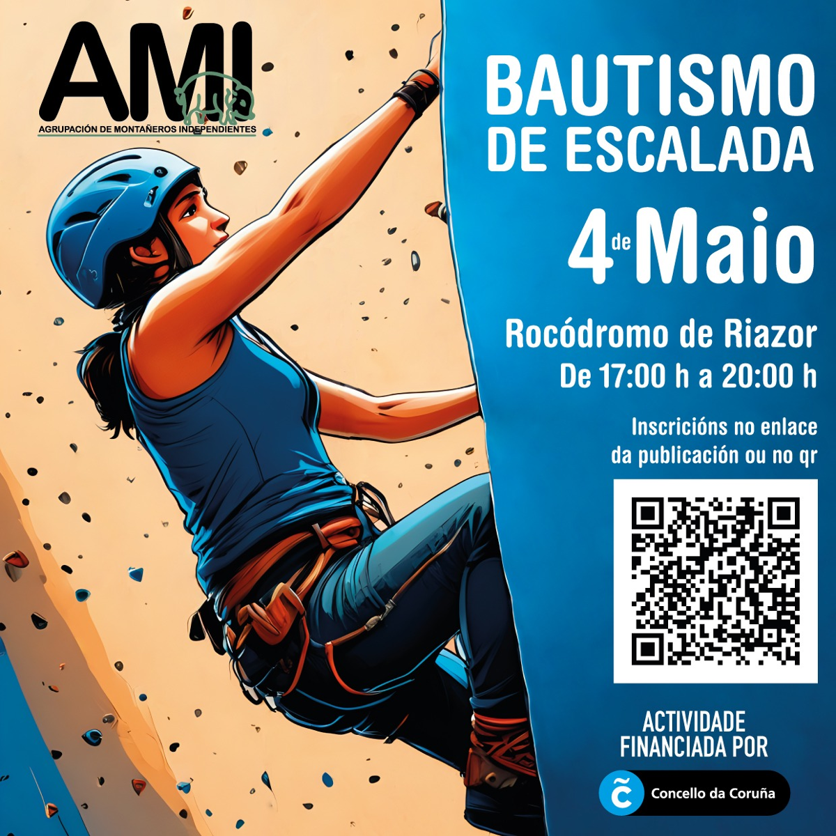 A AMI (Agrupación de Montañeiros Independentes) organiza, no rocódromo de Riazor, un bautismo de escalada.