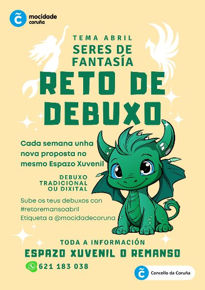 Proponse un reto para quen queira participar. Cada luns do mes, no Remanso, anunciarase a palabra sobre a que hai que debuxar. Pode ser un debuxo a man en papel ou dixital. A idea é que as persoas participantes suban os debuxos semanalmente a instagram, etiquetando a @mocidadecoruna, e co cancelo #retoremansoabril. As persoas que completen o reto poderían recibir un sinxelo agasallo como recompensa.