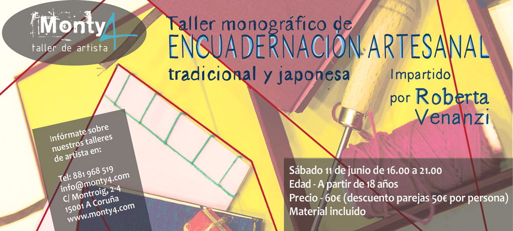 Taller teórico-práctico que tiene como objetivo introducir a los alumnos en el mundo de la encuadernación tradicional y japonesa. Oragnizado por Monty4.