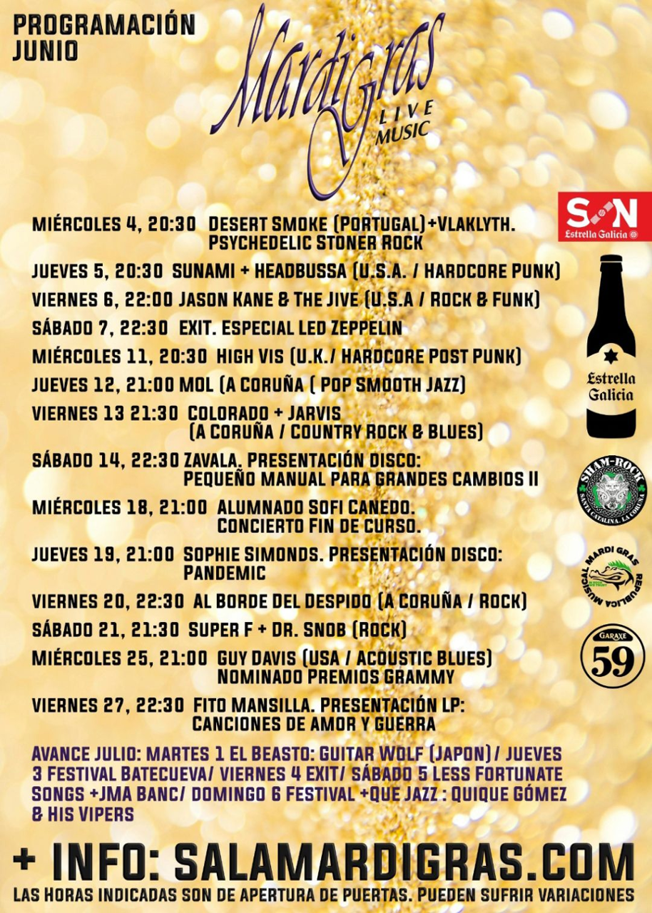 La sala Mardi Gras presenta su programación de conciertos y otros eventos para el mes de diciembre.