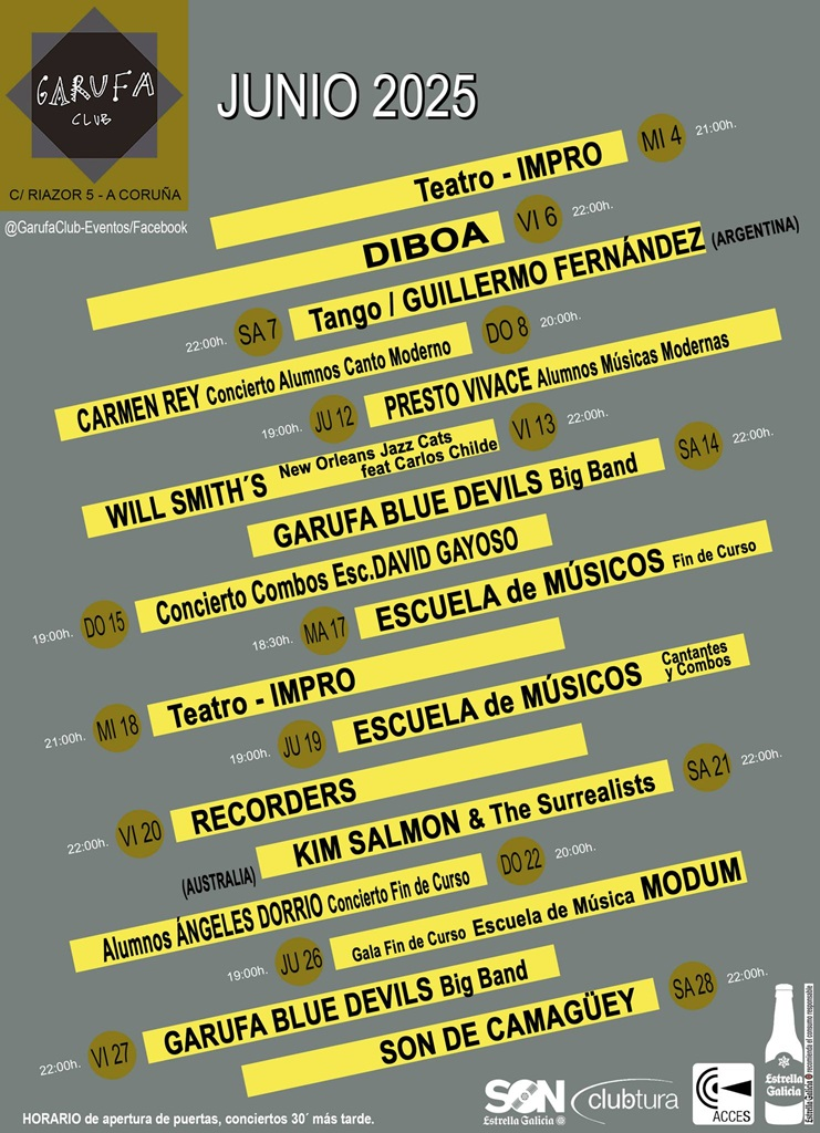 La sala Garufa Club presenta su programación de concertos y espectáculos para el mes de diciembre.