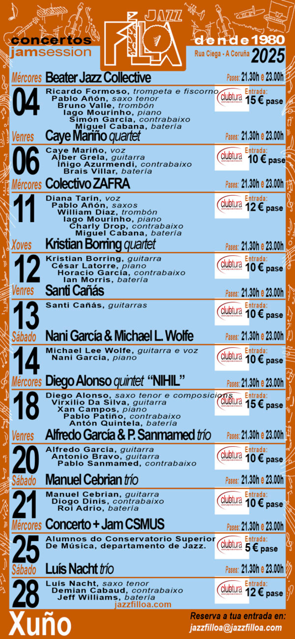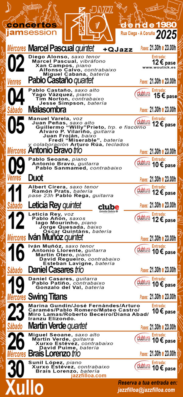 Axenda de concertos do mes de decembro no Jazz Filloa.