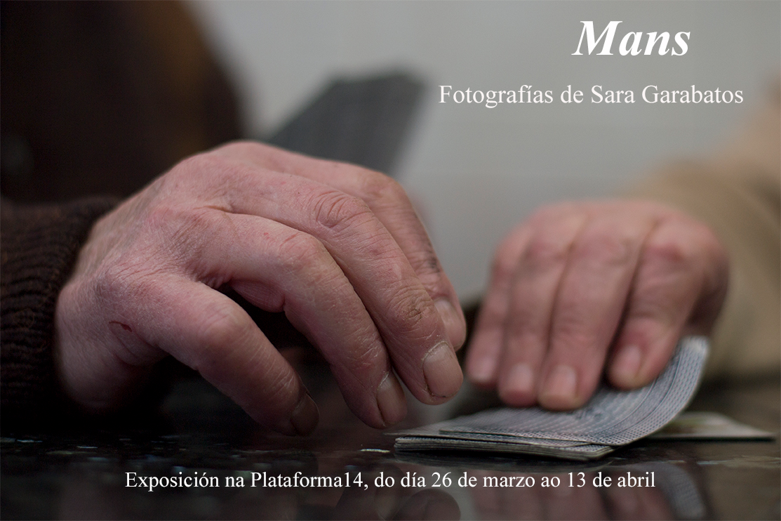 A sala de exposicións Plataforma14 acolle “Mans”, última reportaxe fotográfica da artista Sara Garabatos Díaz, alumna do CIFP Imaxe e Son: mostra composta por 14 fotografías de 45x35 cm realizadas a finais do ano 2017 e principios do 2018, partindo da inquietude de observar as mans do entorno da fotógrafa sabendo a que se dedicaban.