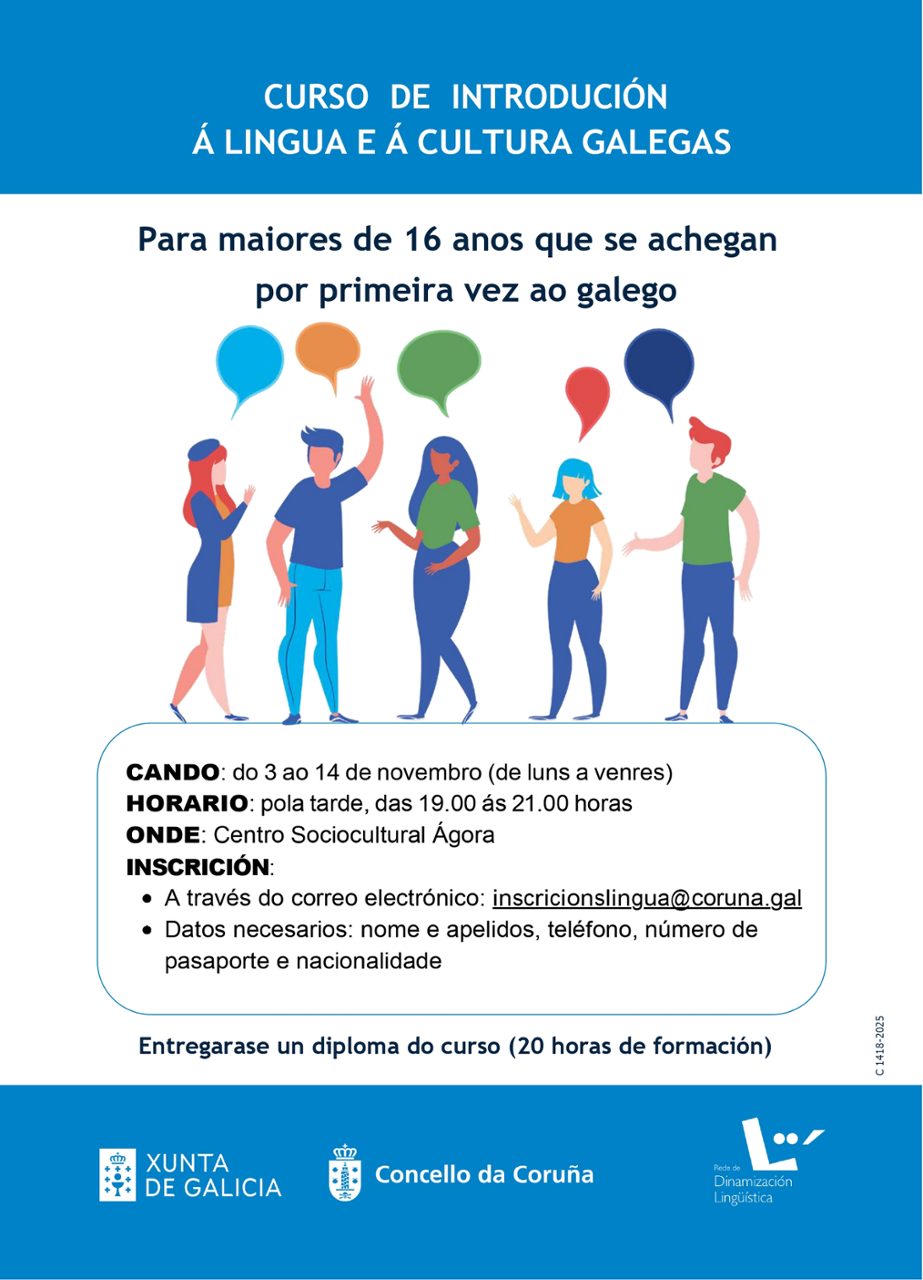 A través da Secretaría Xeral da Lingua, no Concello da Coruña organizaranse no outono tres cursos de achegamento á lingua galega, co fin de favorecer un maior emprego do noso idioma propio e poñer en valor as accións para prestixiar e atraer a xente cara ao galego, especialmente as dirixidas ao alto número de persoas provenientes do exterior.