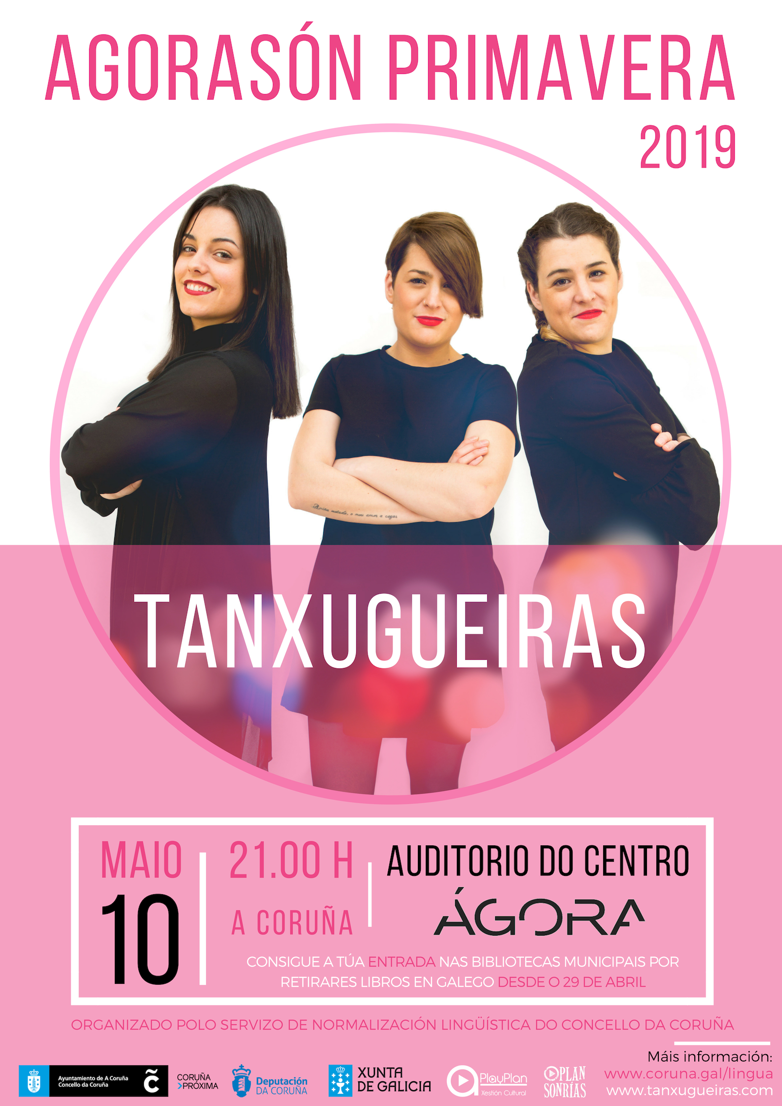 Con motivo do Día das Letras Galegas e para promover a lectura en lingua galega, o Servizo de Normalización Lingüística do Concello da Coruña organiza o AgoraSón 2019, coas Tanxugueiras en concerto.
