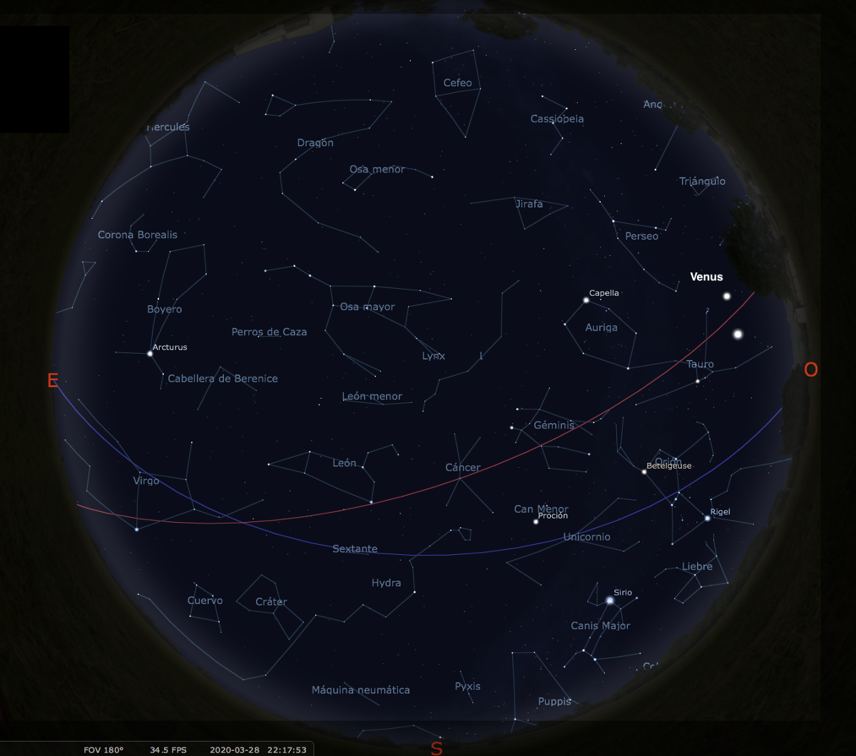 Os nosos pobos e cidades aínda están demasiado iluminados pola noite, pero se as túas xanelas teñen un horizonte despexado e podes evitar a luz directa dos farois, é o momento de aproveitar as horas tras a posta de Sol (ou as do amencer, se prefires madrugar) para gozar do que nos ofrece o firmamento estes días.