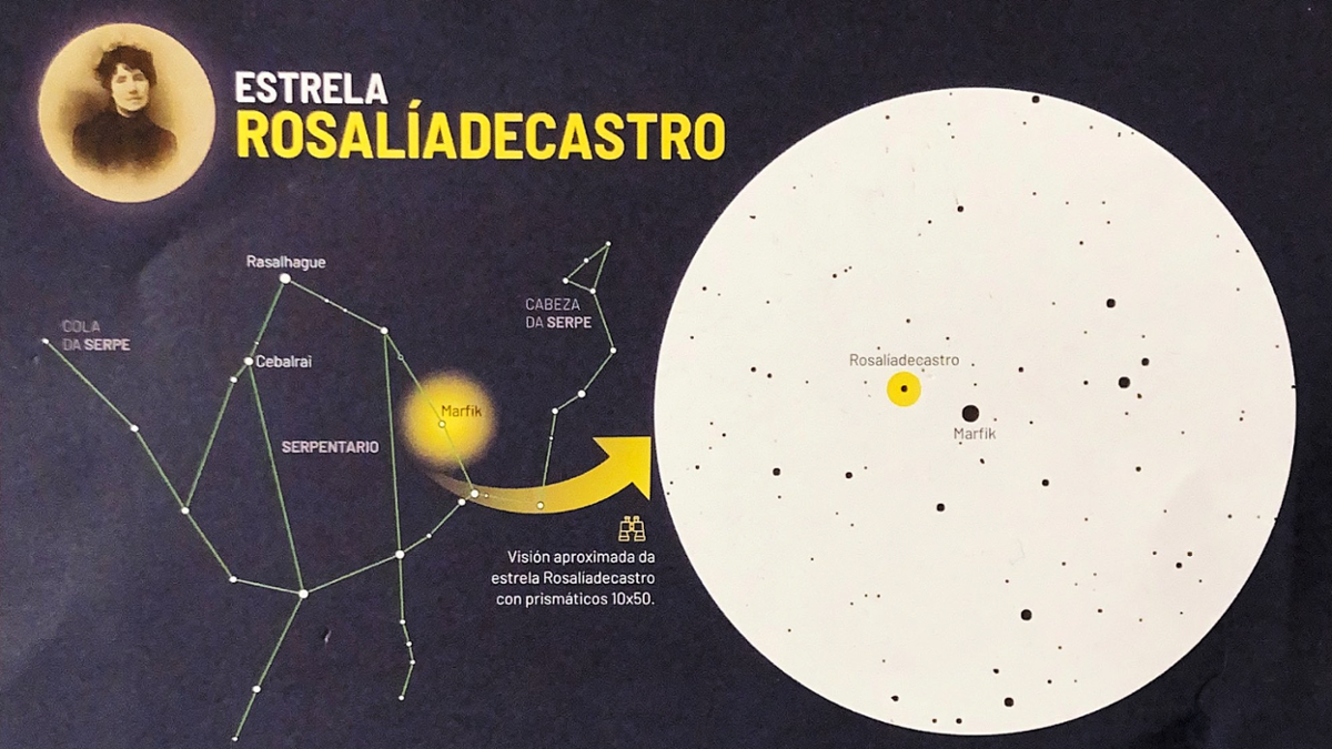 O 17 de decembro de 2019 a Unión Astronómica Internacional designou oficialmente co nome Rosalíadecastro a unha estrela na constelación do Serpentario. No quinto aniversario deste fito histórico, o mércores 18 de decembro realízase unha actividade na Casa das Ciencias na que Martin Pawley, promotor da campaña dende a Agrupación Astronómica Coruñesa Ío, contará historias da astronomía a través dos textos de Rosalía de Castro, nunha sesión especial de planetario arredor da escritora e da súa estrela.