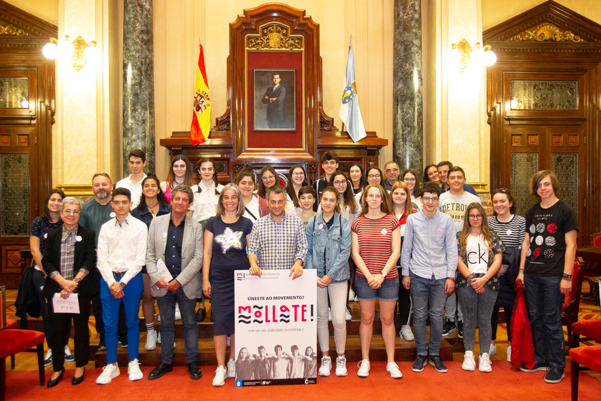 "A mocidade europea está a mobilizarse para reclamar aos gobernos locais e estatais un cambio nas súas políticas ambientais. Na Coruña levamos catro anos dando voz e representación ao alumnado da cidade para sexan protagonistas dun cambio no xeito de de xestionar a festa de San Xoán e os residuos que nela se producen, e os resultados evidencian o bo funcionamento desta medida: en catro anos a redución do lixo das praias foi dun 45%", sinalou Xulio Ferreiro durante o acto. Ao fío, a concelleira de Medio ambiente lembrou que, durante os catro anos de funcionamento de Móllate!, cerca dun milleiro de alumnas e alumnos participaron no programa. "Cómpre agradecer a mocidade o seu compromiso coa cidade e co planeta. Hai un xeito diferente de vivir San Xoán, de vivir de forma diaria co respecto ao medio ambiente. Cremos que este programa é unha ferramenta que responde, dun xeito activo, ás reclamacións dunha xuventude que quere ter voz e participar no desenvolvemento de novos modelos de políticas ambientais", apuntou María García.