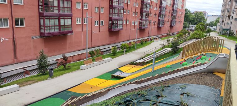 Desde el viernes 22 de julio se puede acceder a la nueva zona verde creada en el barrio de Novo Mesoiro, situada entre los seis bloques de edificios que forman las calles Ribeira Sacra y Fragas do Eume, y que se extiende a lo largo de un kilómetro.