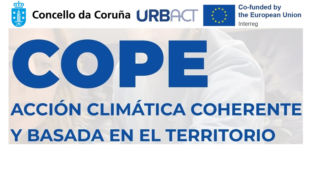 Para contribuír ao obxectivo europeo de alcanzar a neutralidade de carbono en 2050, é fundamental unha transición verde e xusta nas cidades. A Coruña forma parte dela rede URBACT COPE (Acción Climática Coherente e Baseada no Territorio), unha rede que pretende desbloquear o potencial verde da acción cidadá a través dun enfoque baseado no territorio, recoñecendo á cidadanía e aos grupos de acciónlocal como actores fundamentais para acelerar a transición ecolóxica. Ao involucrar activamente ás comunidades locais, e particularmente aos sectores de poblaciónque tradicionalmente quedaron á marxe da acción climática, a rede COPEaumentará o alcance e o impacto das políticas municipais neste contexto.