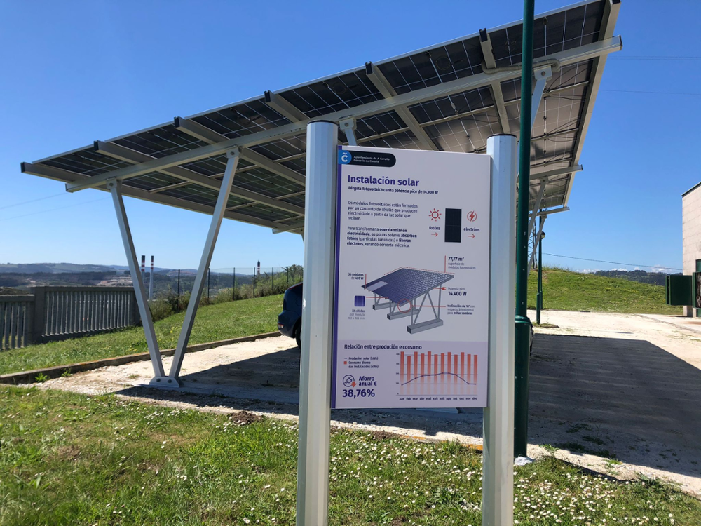 Para recorrer este camino se han llevado a cabo dos actuaciones de especial relevancia. Por un lado se ha procedido a la implantación de una instalación híbrida solar-eólica de 20 kW, que es la primera de una serie de instalaciones demostrativas de producción de energía mediante fuentes renovables, con las que se irá sustituyendo la actual producción de energía eléctrica con biogás renovable por otras que permitan continuar con el autoabastecimiento del edificio, dando visibilidad así, de una forma práctica y tangible, el proceso de transición energética por el que ha de transitar nuestro ayuntamiento en el futuro inmediato.