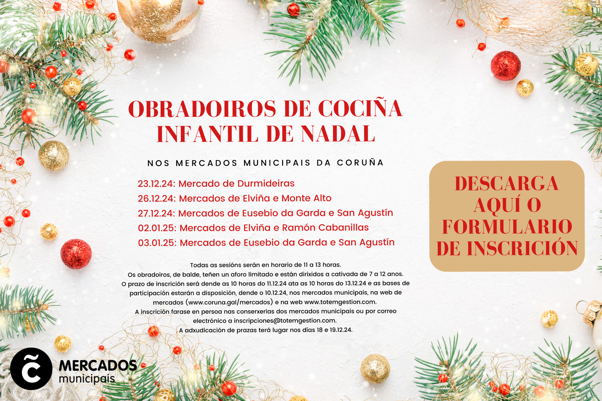 O prazo de inscrición abrirase mañá ás 10.00 e durará ata as 10.00 do venres 12 de decembro