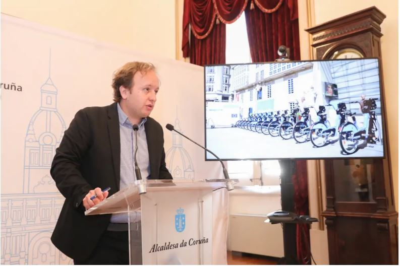 La Alcaldesa, Inés Rey, acompañada por el Concejal de Movilidad, Francisco Dinís Díaz Gallego, presentó el 07/06/22 la renovación y ampliación del servicio público de préstamo de bicicletas de la Ciudad de A Coruña.