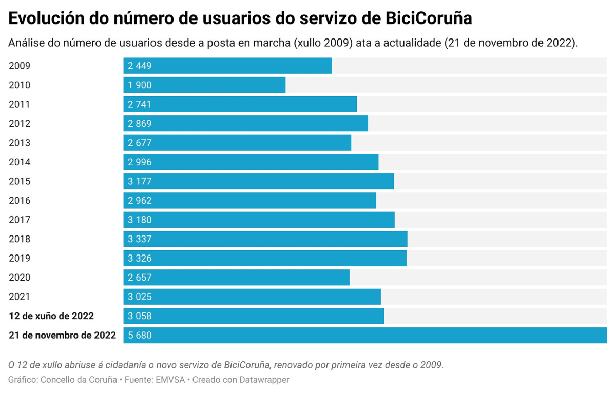 Accede al gráfico de la Evolución del número de usuarios del Servicio de Bici-Coruña