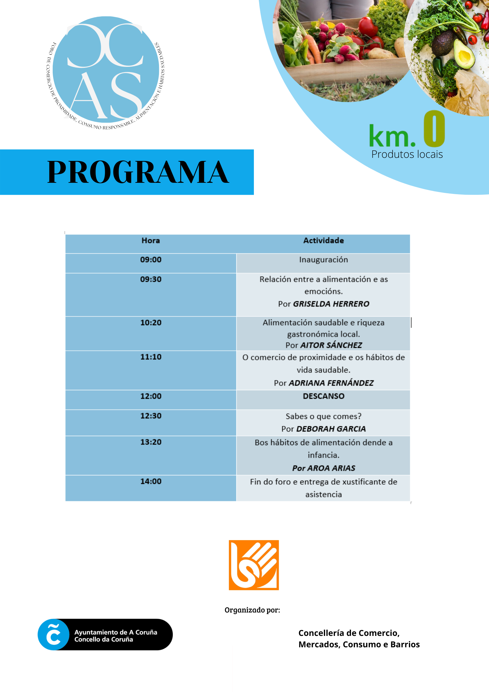 O día 18 de novembro no Paraninfo da Universidade da Coruña o Concello a través da Concellaría e Comercio, Mercados, Consumo e Barrios vai a desenvolver un Foro centrado en hábitos saudables na alimentación das persoas consumidoras.
