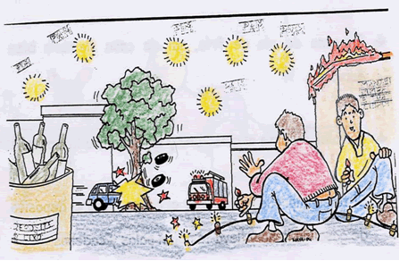 Las fiestas son un motivo de alegría y disfrute para toda una comunidad. Al entrar en un lugar de pública concurrencia, nos fijaremos en las salidas de emergencia. Evitar subirse a marquesinas, balcones, andamios, etc, no usar material pirotecnico si no se es experto......, son algunas de la recomendaciones para que no se acabe la fiesta.