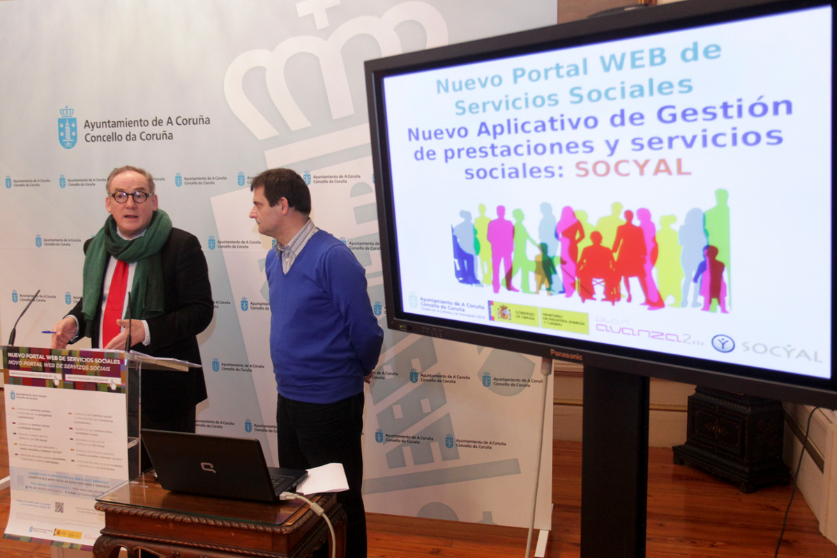 Miguel Lorenzo explicó que, tras más de dos años de intenso trabajo, en colaboración con el Ministerio de Industria, Energía y Turismo a través del proyecto Avanza 2, el Ayuntamiento de A Coruña pone en marcha la herramienta SOCYAL, que permitirá la gestión integrada de la atención social: "Se trata de un instrumento que presenta grandes ventajas para los trabajadores municipales con respecto a la tecnología que utilizábamos y que además acercará la administración al ciudadano", subrayó el concejal.