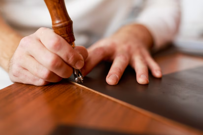 A partir dunha serie de técnicas e materiais como  o coiro ou falso coiro e tira de badana crearanse diferentes deseños.