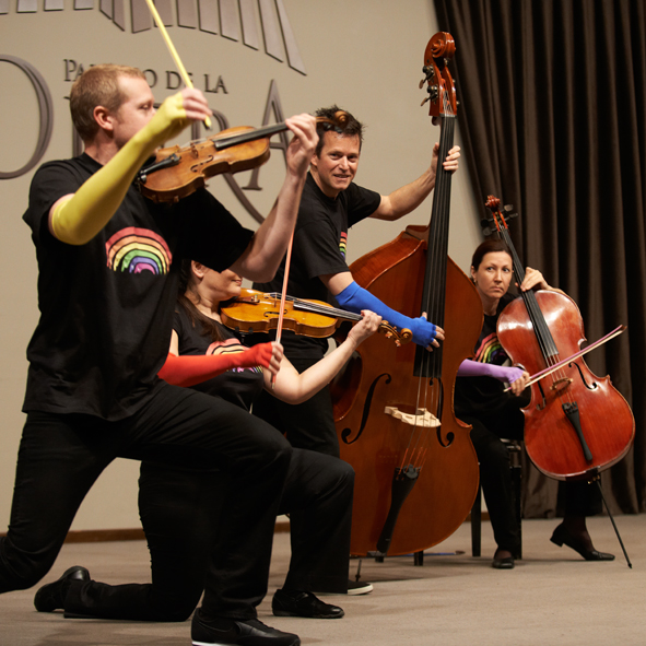 El grupo ARCOS IRIS, formado por un grupo 6 cuerdas (3 violines, 1 viola, 1 chelo y 1 contrabajo) de la Orquesta Sinfónica de Galicia, ofrece un recorrido sonoro (y visual) por la música desde el siglo XVIII hasta la actualidad, desde Austria hasta Irlanda; desde la música celta al jazz.