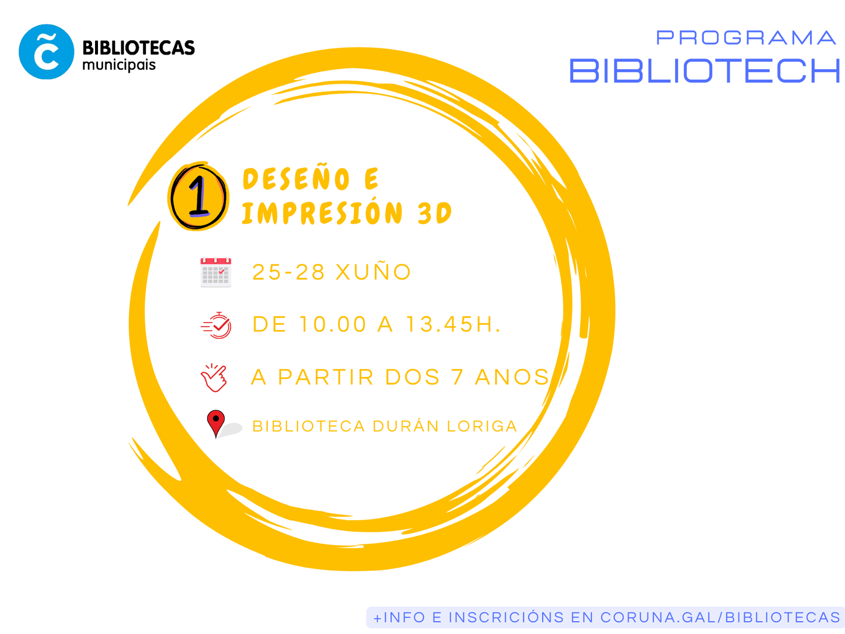 Este é o primeiro dos campamentos urbanos que terán lugar na Biblioteca Durán Loriga, dentro do programa BiblioTECH . Un taller de iniciación ao diseño e impresión 3D co que introducirse no mundo das tecnoloxías 3D, desde o programa máis básico, para poder ter unha experiencia inicial e óptima no deseño de obxectos, personaxes e ensamblaxes en 3 dimensións.