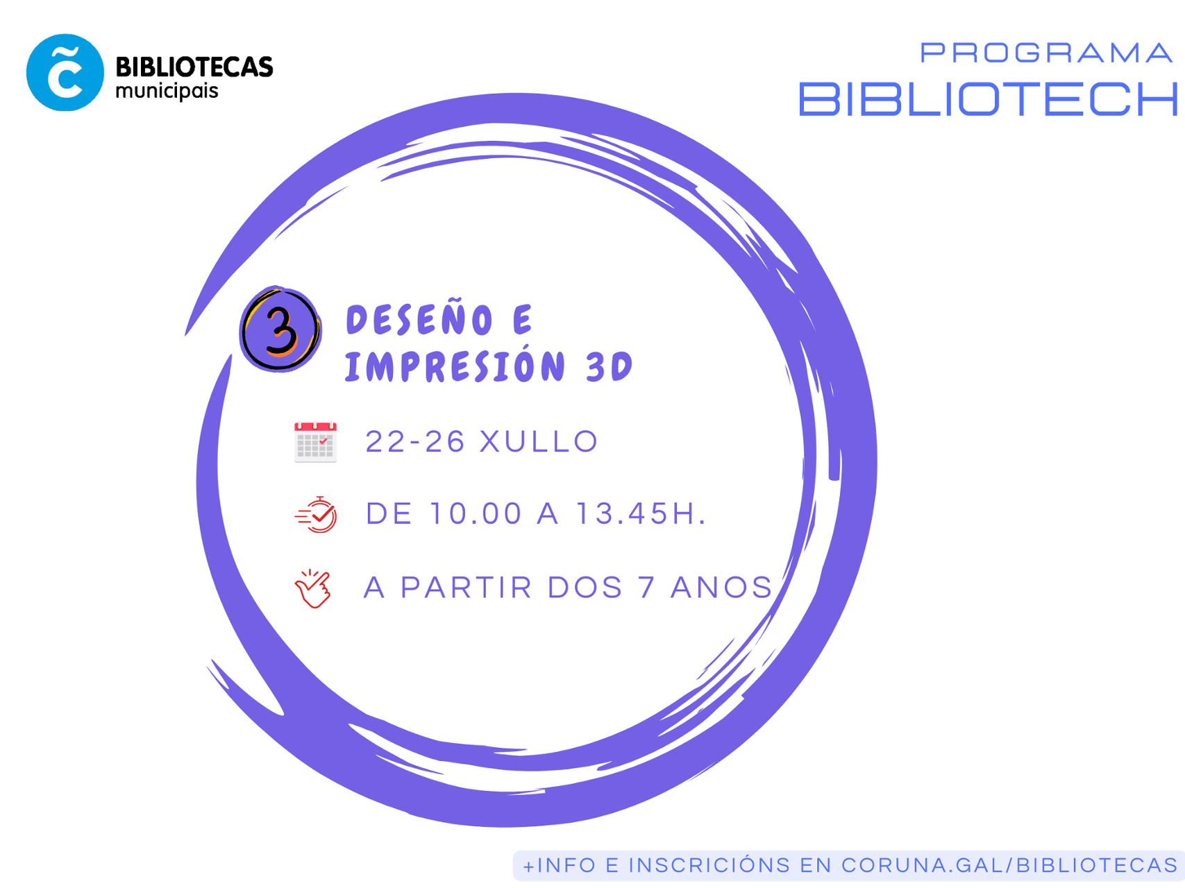 Este é o último dos campamentos urbanos que terán lugar na Biblioteca Durán Loriga , dentro do programa BiblioTECH . Un taller de iniciación ao diseño e á impresión 3D co que introducirse no mundo das tecnoloxías 3D, dende o programa máis básico, para poder ter unha experiencia inicial e óptima no deseño de obxectos, personaxes e ensamblaxes en 3 dimensións.