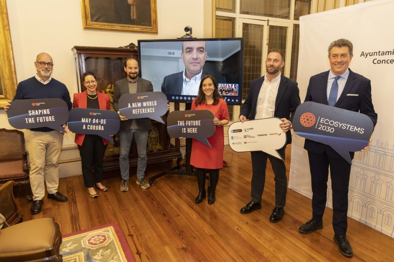En la rueda de prensa, presidida por la alcaldesa, Inés Rey, intervinieron también el presidente ejecutivo de Ecosystems2030, Omar Hatamleh (en videoconferencia desde Houston), el delegado territorial de la Xunta en A Coruña, Gonzalo Trenor, y el director de Asuntos Corporativos de Hijos de Rivera, Antonio Viejo. "Con la estadía de Ecosystems2030 de nuevo en A Coruña, continuamos avanzando en el modelo de ciudad que estamos desarrollando y en el que A Coruña es ya un gran referente en innovación y desarrollo tecnológico, y también en el fomento del turismo de congresos y de negocios", señaló Inés Rey.