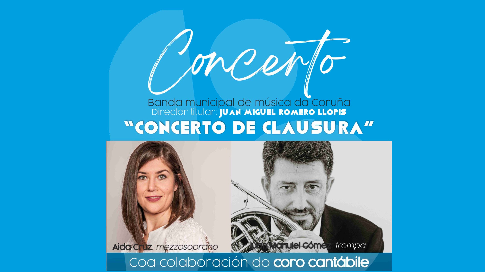 A Banda interpretará 'Concerto de Clausura' da Banda Municipal de Música e o coro Cantabile, baixo a dirección do director titular, Juan Miguel Romero Llopis, o solista de trompa J.M.Gómez e a mezzosoprano Aida Cruz.