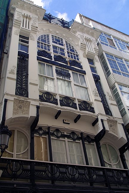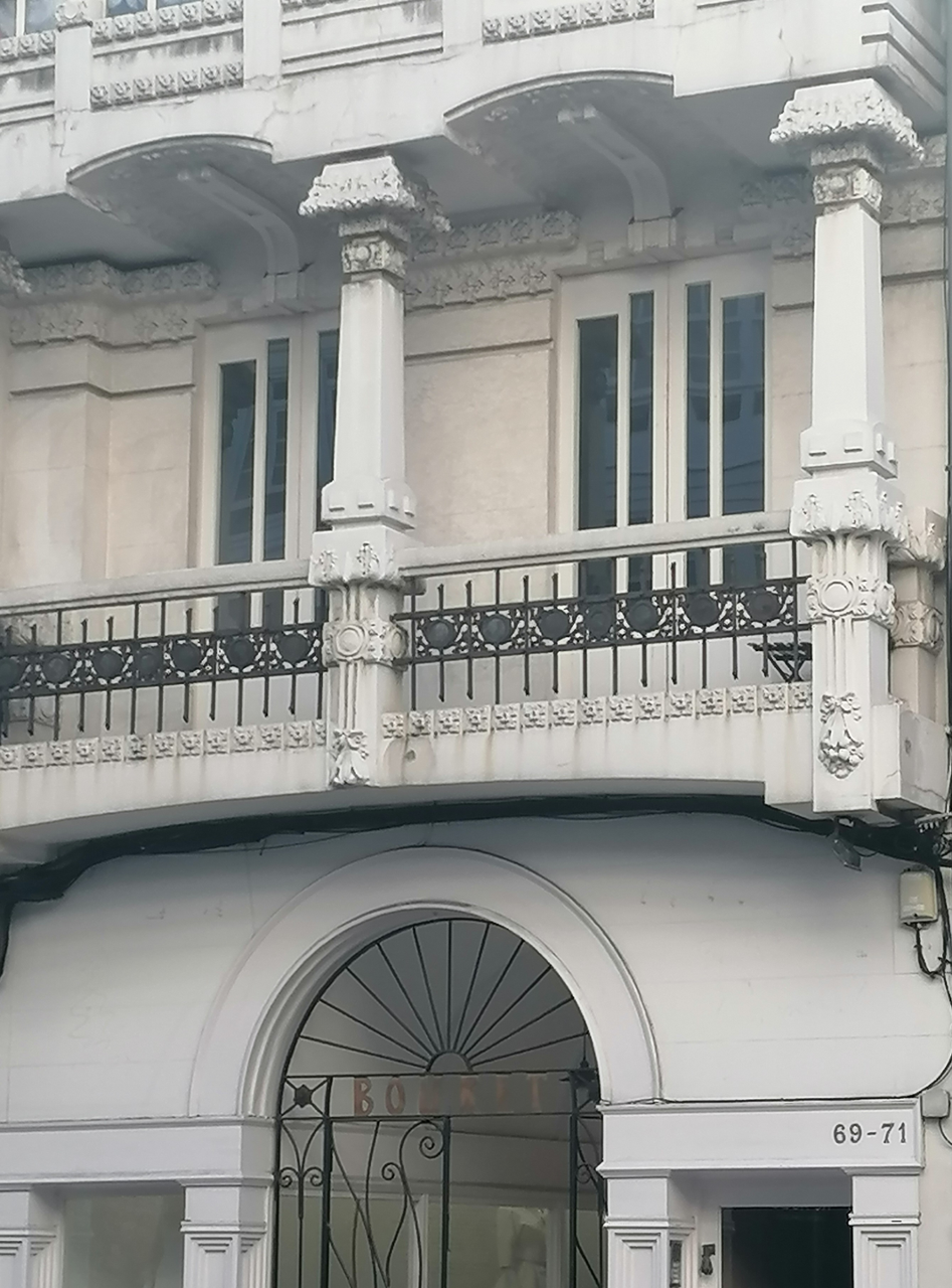 Asymmetrical main façade, rich in decorative elements, with neo-Mudéjar influences, brickwork and striking wrought iron. It is Boán's most fanciful work.